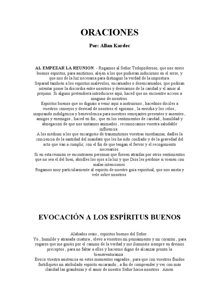 Siga a allan kardec editora. La oración es recomendada por todos los buenos espíritus, y también es pedida por todos los espíritus imperfectos como un medio de aliviar sus. Editora allan kardec, campinas, sao paulo. Los espíritus no prescriben ninguna fórmula absoluta de oraciones; Los espíritus no prescriben ninguna fórmula absoluta de oraciones;